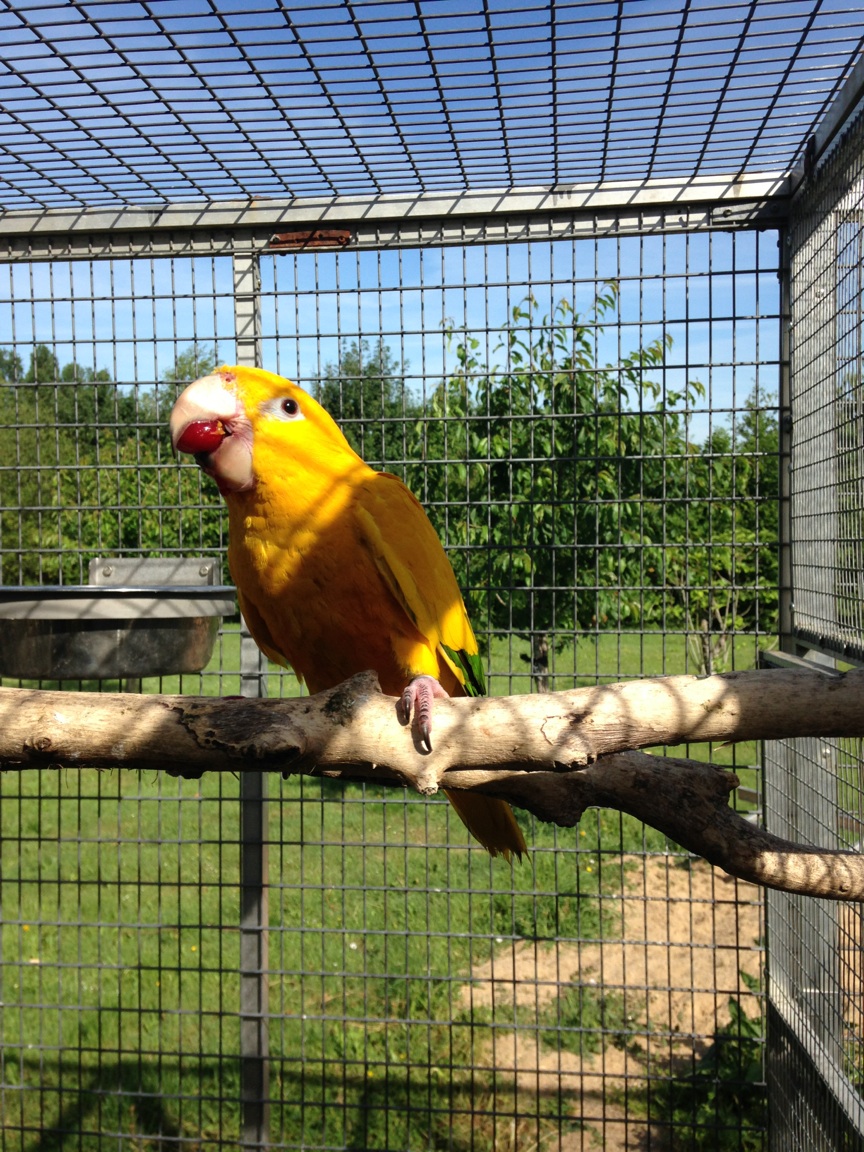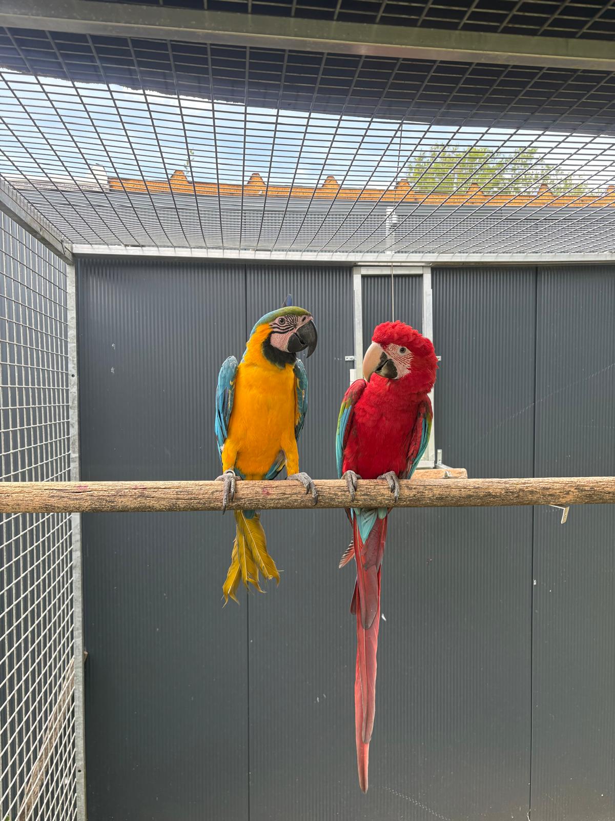 Nos volières extérieures offrent un accès à la lumière naturelle et à l’air frais. Protégées des intempéries, elles permettent aux perroquets de profiter du plein air en toute sécurité.