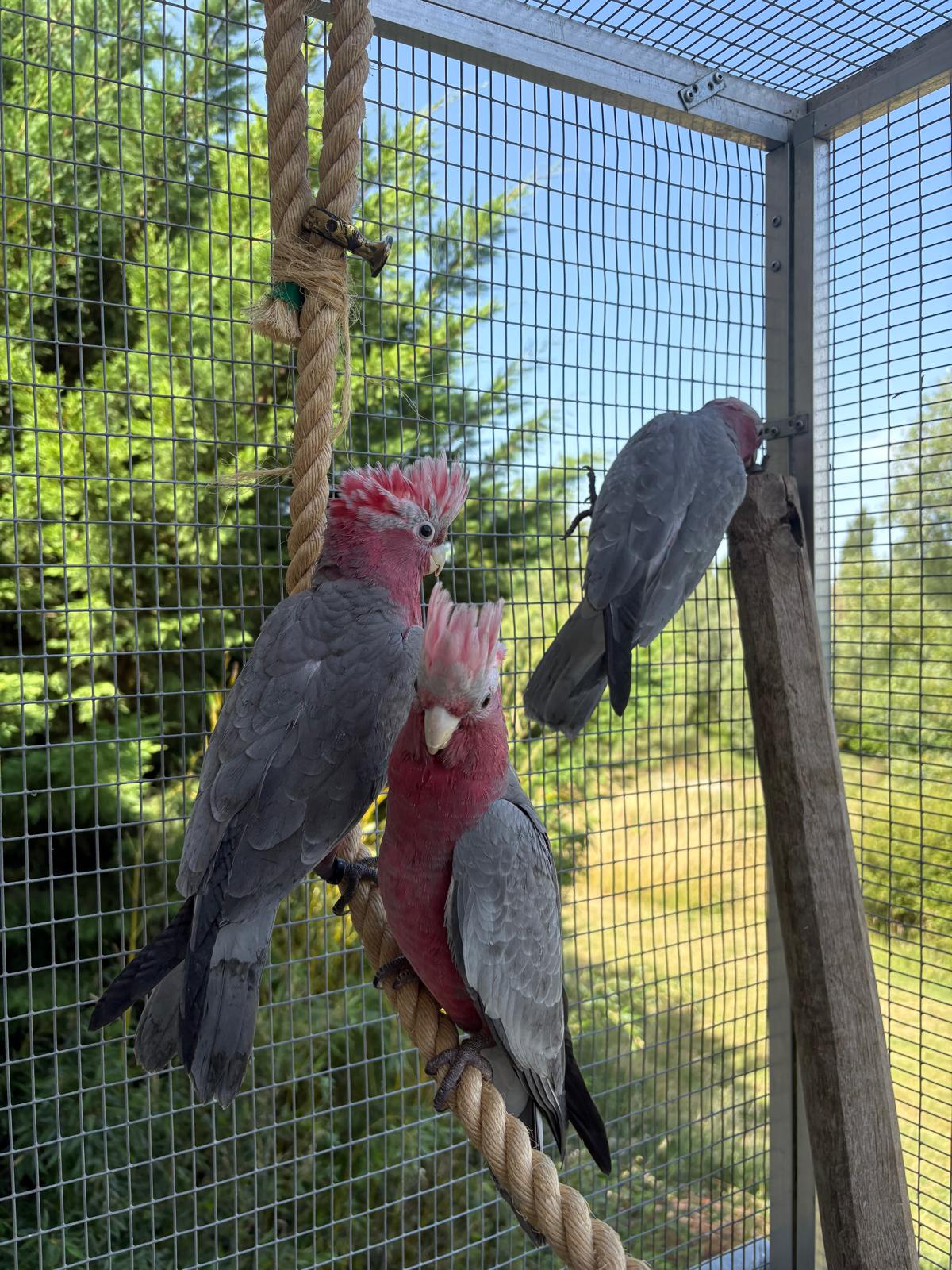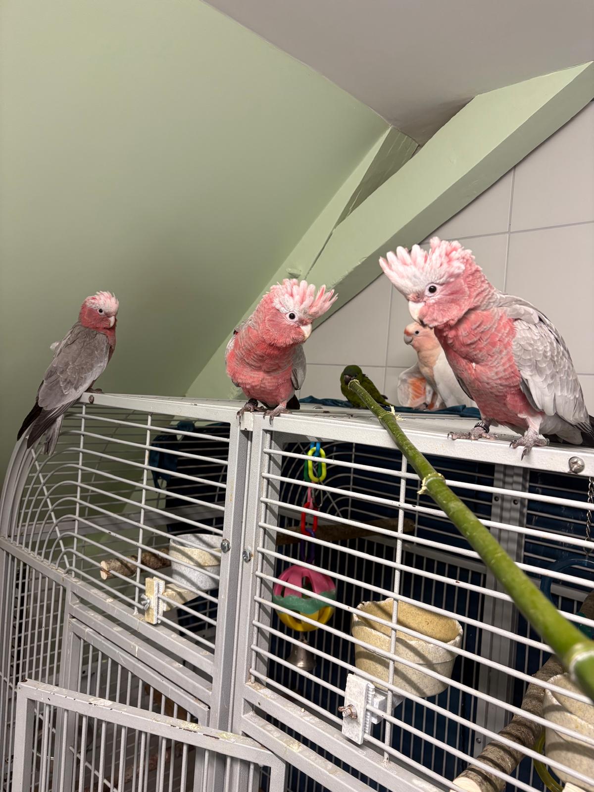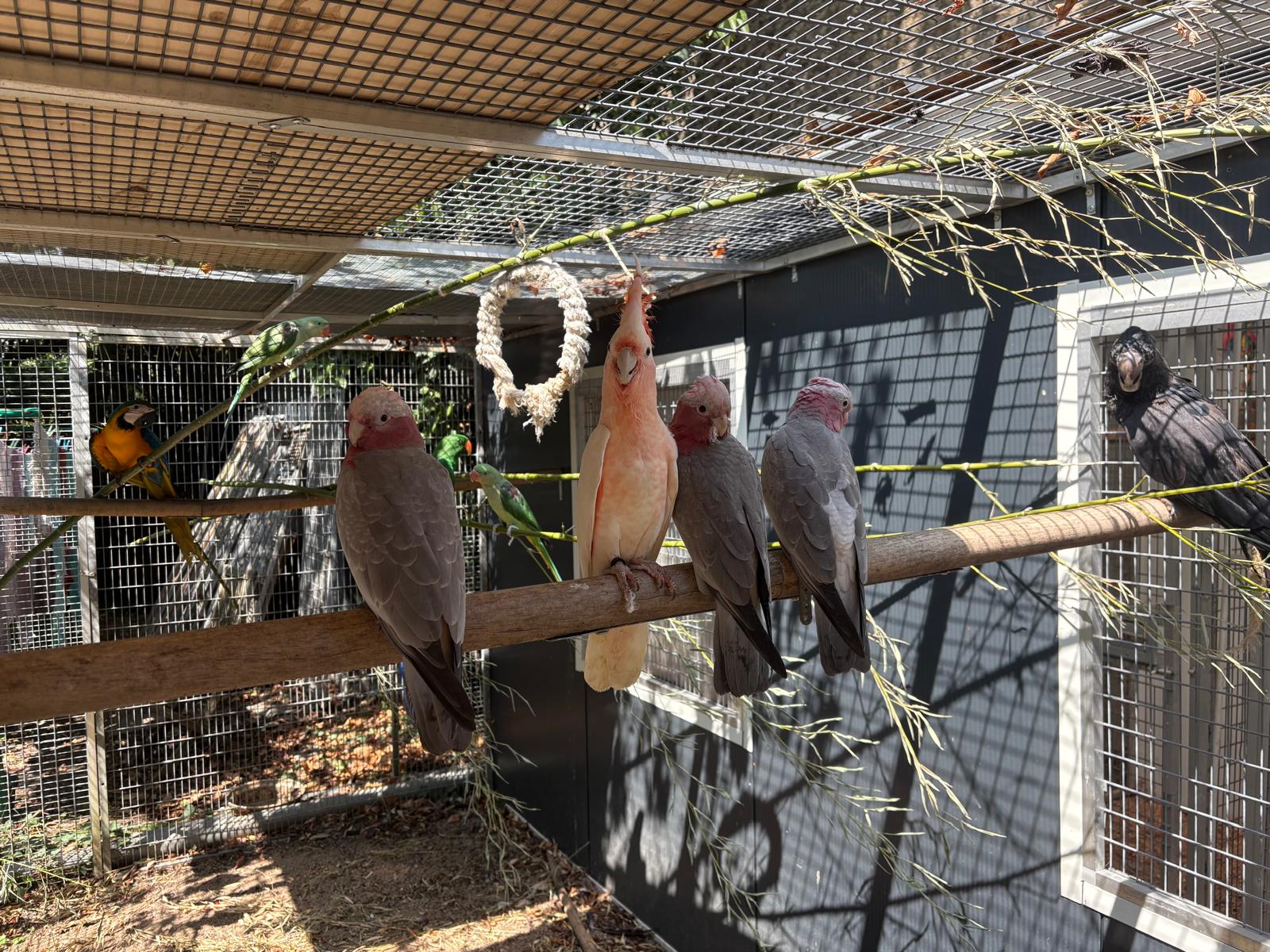 Nos volières intérieures sont spacieuses, lumineuses et chauffées. Chaque espace est aménagé avec des perchoirs en bois naturel, des jouets d’enrichissement et une végétation tropicale pour recréer un environnement stimulant.